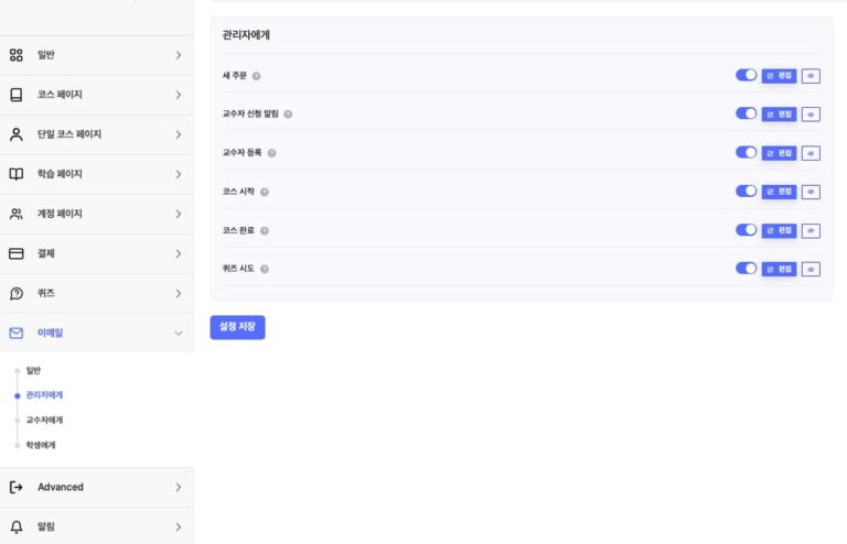 관리자 페이지는 보안상 일부만 공개되어 있습니다